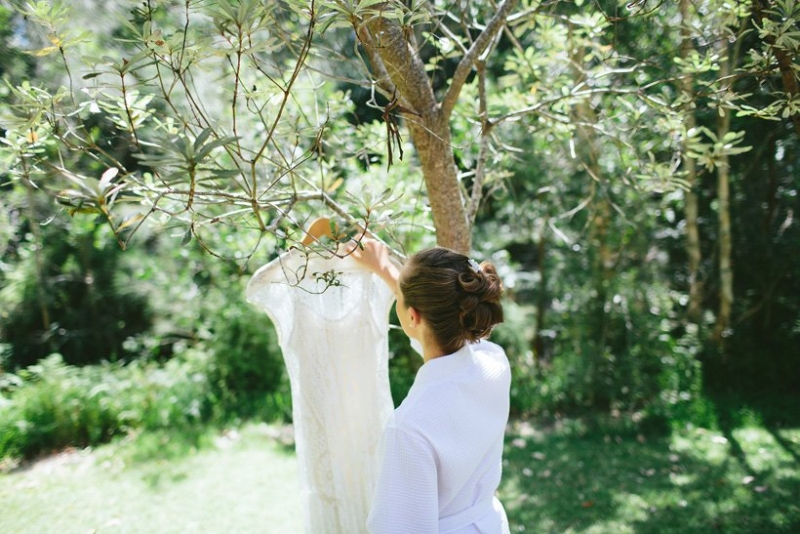 Ethical living doesn’t need to replace elegance as Anna and Tim proved at their inclusive, understated wedding. They chose to wed under a tree canopy at an eco resort The Oasis in Port Stephens. They delighted in a venue that could house the guests, welcomed kids and provided disabled facilities. The wedding was a leisurely affair with the ceremony starting late enough in the day to enjoy a sleep-in (if excitement allowed) and unhurried prep time.