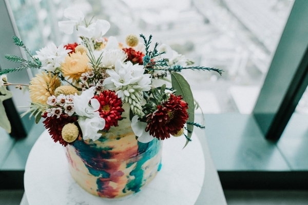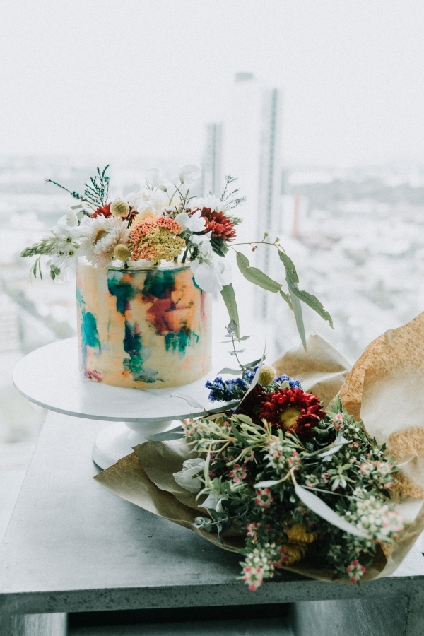 Ms Zigzag says: The cake colours and florals perfectly complement the celebration and the outdoor setting by the Yarra.