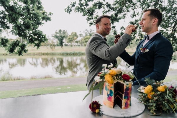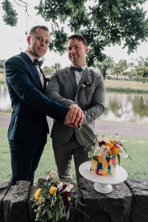 In February this year, we featured Neale and Maciej’s joyful engagement celebration held on the banks of the Yarra River in Melbourne. Among many of the factors that we loved about this party was the glorious, rainbow cake that they cut together in the company of their friends. We spoke to Mai, owner of Cayks and creator of this masterpiece, about the inspiration behind the design.