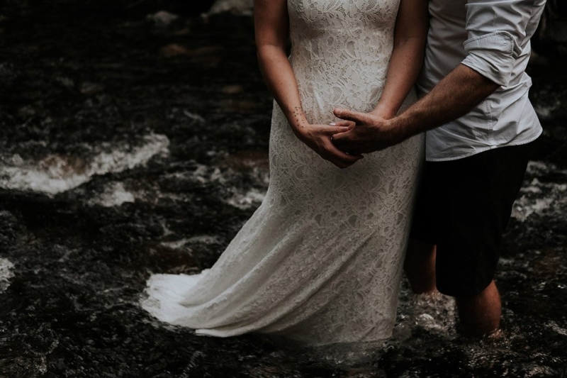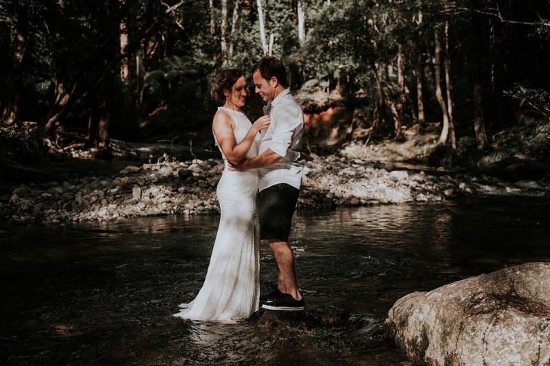 “We spoke with our photographer about doing something a bit different and crazy and when she suggested standing in the Never Never Creek at The Promised Land we knew immediately that we had found our dream location (and a photographer that totally understood us).”