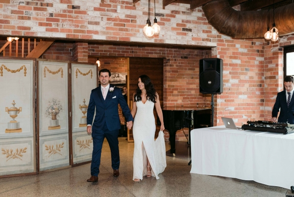 Guests gathered inside for a sit-down dinner reception, complete with tiered cake by Sweet by Nature. “Our cake looked amazing and tasted so good too” remembers the bride.