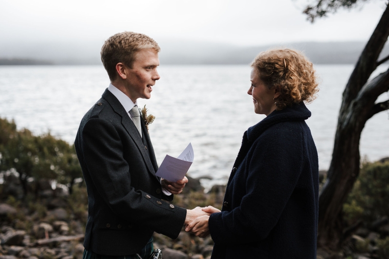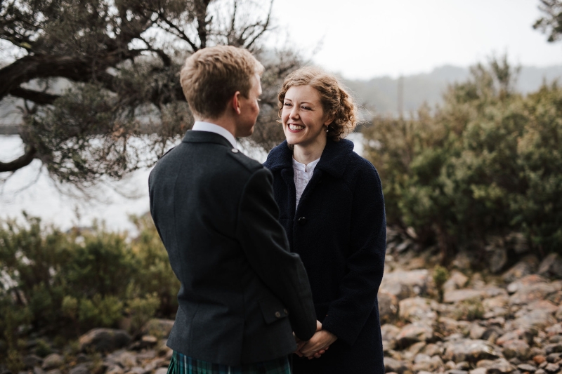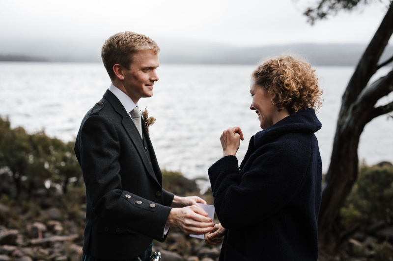 When the wedding began, though, it was the ceremony for us that really stood out. The backdrop of the misty rain, standing by Lake St Clair alongside one another and knowing the other person would always be beside you, was special. To say our vows in such an intimate setting really bought them to life.