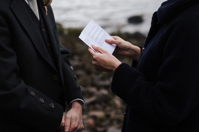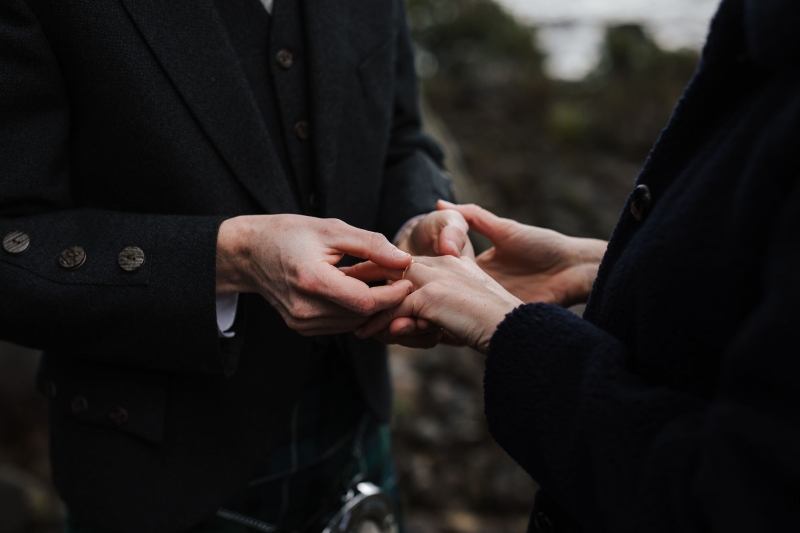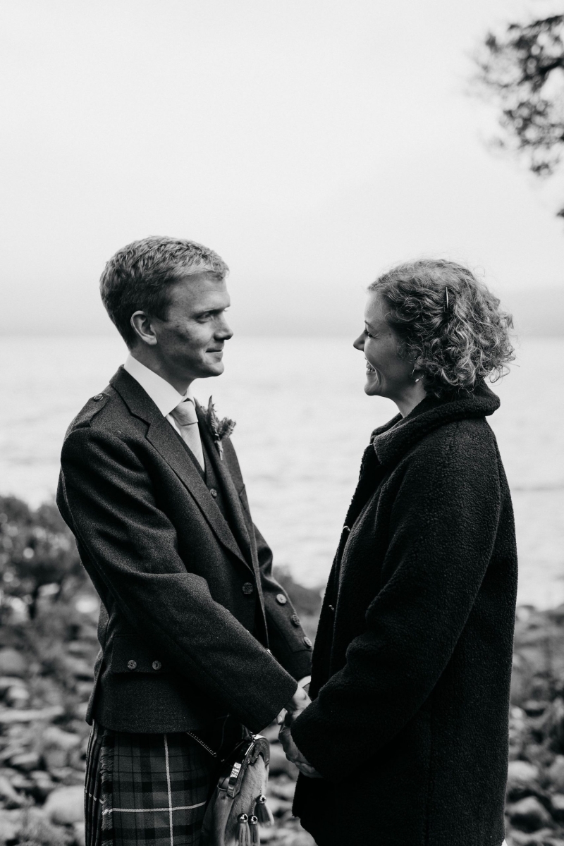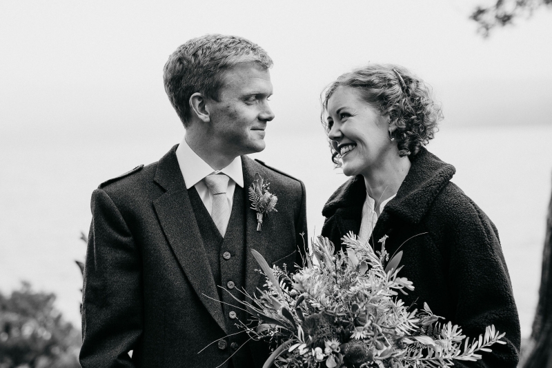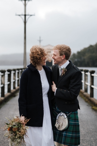 The only thing we had to contend with on the day was the weather! But our fabulous celebrant Rachael and our amazing photographer Nina jumped on board with the 3-degree temperatures, and we simply went outside and did it anyway. It was wonderfully atmospheric and felt very much like we were back in Scotland.