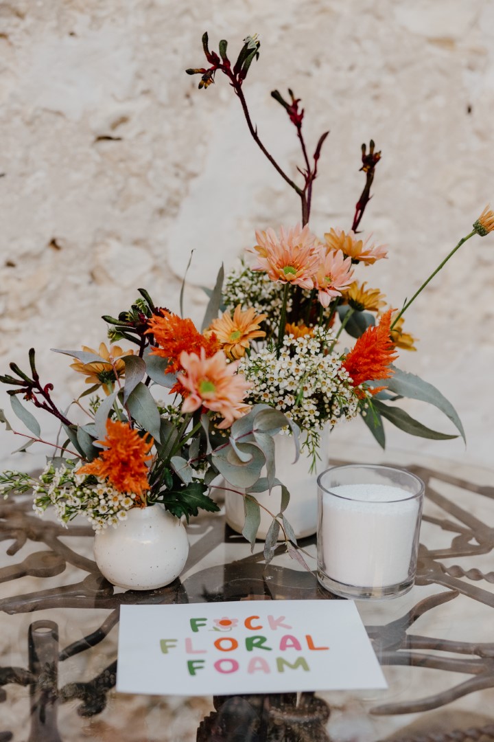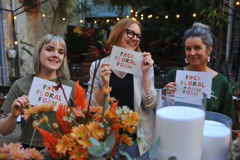 Together with Donna from The Freo Florist and Tara from Euka Floral Design – both sustainable florists in Boorloo (Perth) – we hosted an event to discuss how florists need to transition into sustainable design practices and councils and venues need to ban floral foam from a community level.