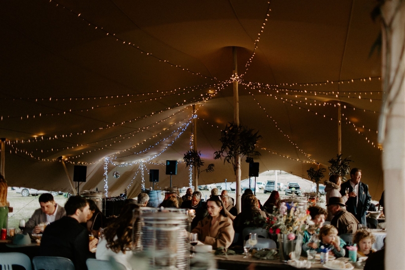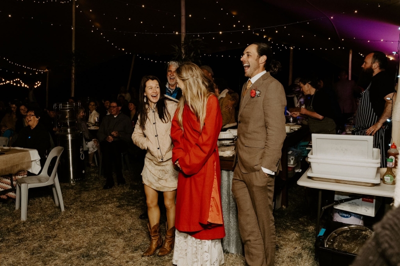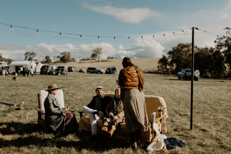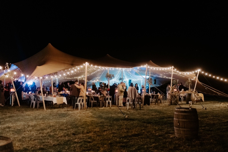 Also included was a stretch tent set up for reception, a food truck connected to a generator, fairy lights connecting the areas, fire pits, music, plenty of great food and drinks and composting toilets and solar heated showers (which they set up themselves!).