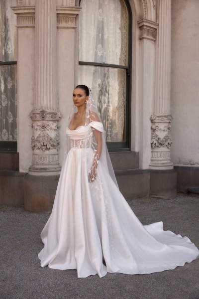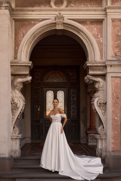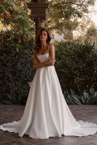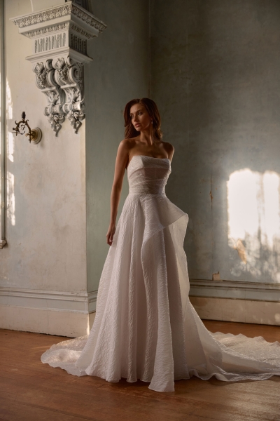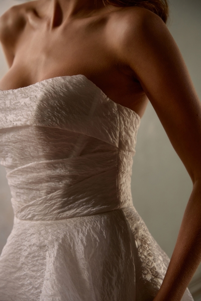 With hand-embellished detailing, lustrous mikado and sleek crepes, sculpted strapless bodices and sweeping silhouettes – every detail in this collection finds the perfect balance of structure and softness.