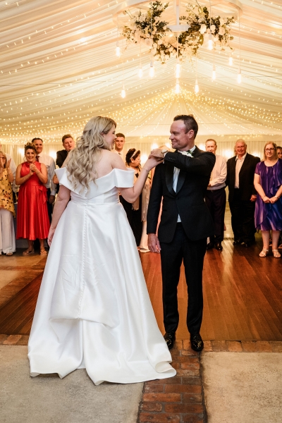 Photographer: @Mergephotography / Beverages: @capecellars / Bride's Dress: @bridalbyaubreyrose / Bride's Shoes: @loefflerandall / Catering: @supper_road_weddings / Ceremony Musicians: @dolceensembles / DJ: @the_weddingdj / Illustration: @forkeepsillustration / Flowers: @blushandbloom_sw / Groom's Attire: @suitvault / Guestbook: @gladyoucalled.co / Wedding Ring: @solidgolddiamonds / Venue: @oldbraodwaterfarm / Transport: @allurelimousineperth / Makeup Artist: @lumieremakeupartistry / Videographer: @chapmanfilms / Celebrant: @loveempirewithnikki⁠