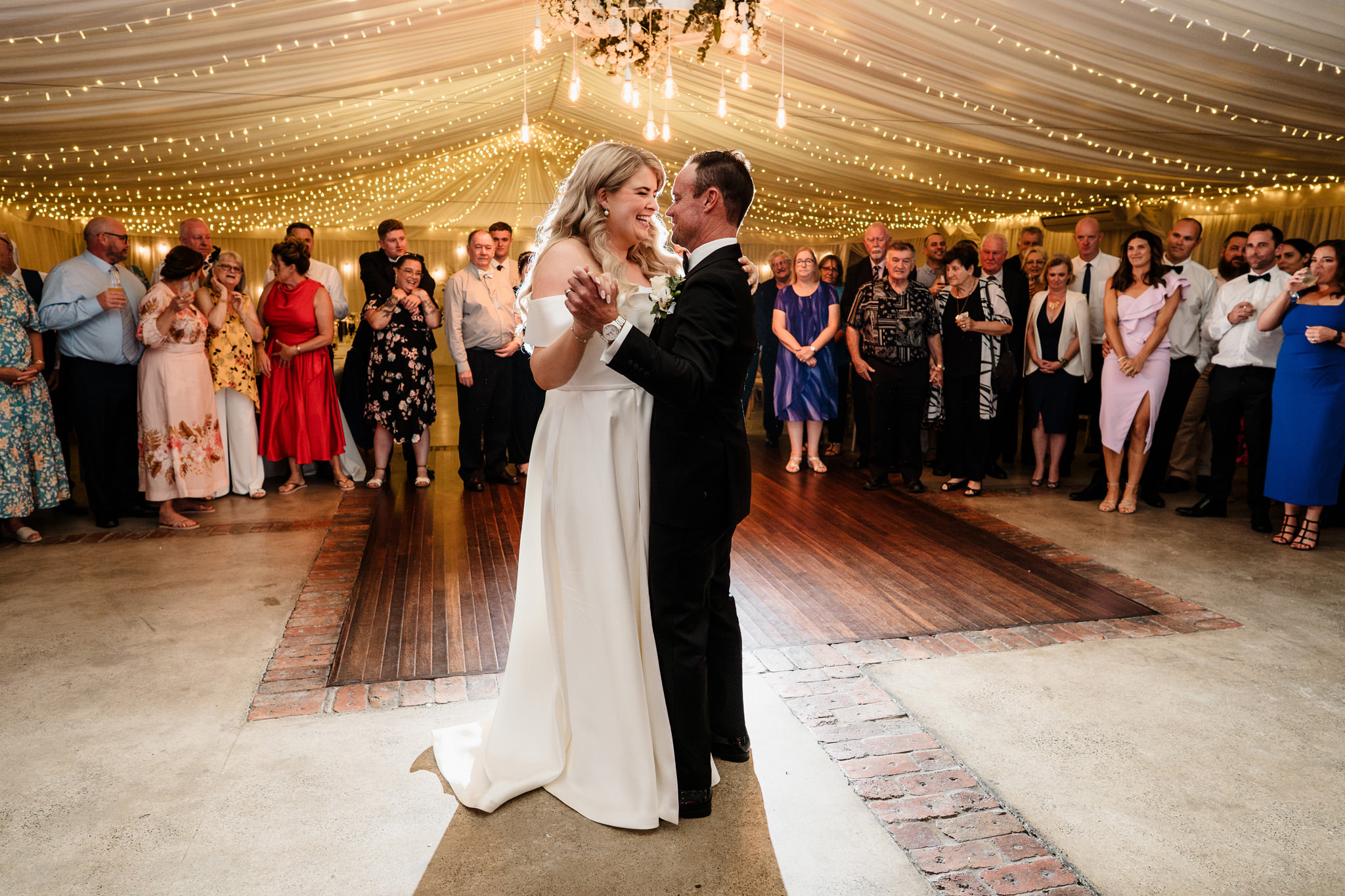 Photographer: @Mergephotography / Beverages: @capecellars / Bride's Dress: @bridalbyaubreyrose / Bride's Shoes: @loefflerandall / Catering: @supper_road_weddings / Ceremony Musicians: @dolceensembles / DJ: @the_weddingdj / Illustration: @forkeepsillustration / Flowers: @blushandbloom_sw / Groom's Attire: @suitvault / Guestbook: @gladyoucalled.co / Wedding Ring: @solidgolddiamonds / Venue: @oldbraodwaterfarm / Transport: @allurelimousineperth / Makeup Artist: @lumieremakeupartistry / Videographer: @chapmanfilms / Celebrant: @loveempirewithnikki⁠