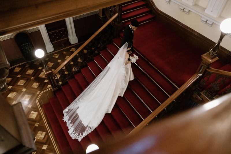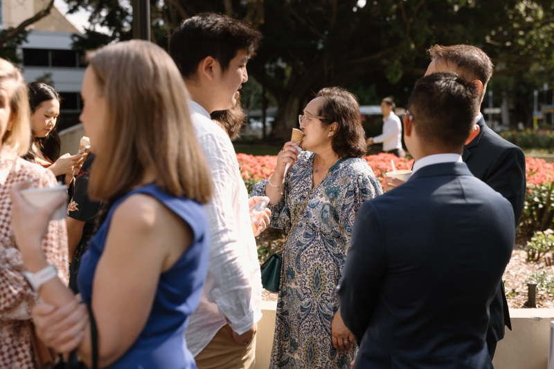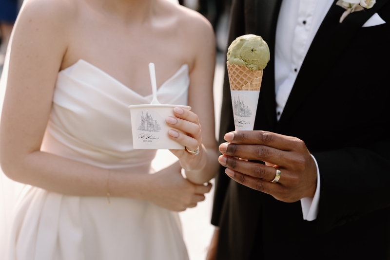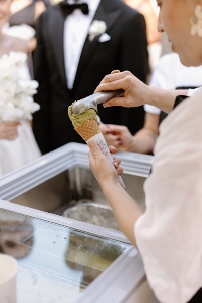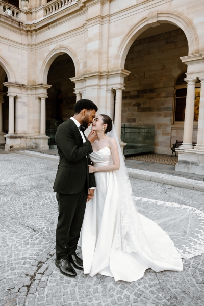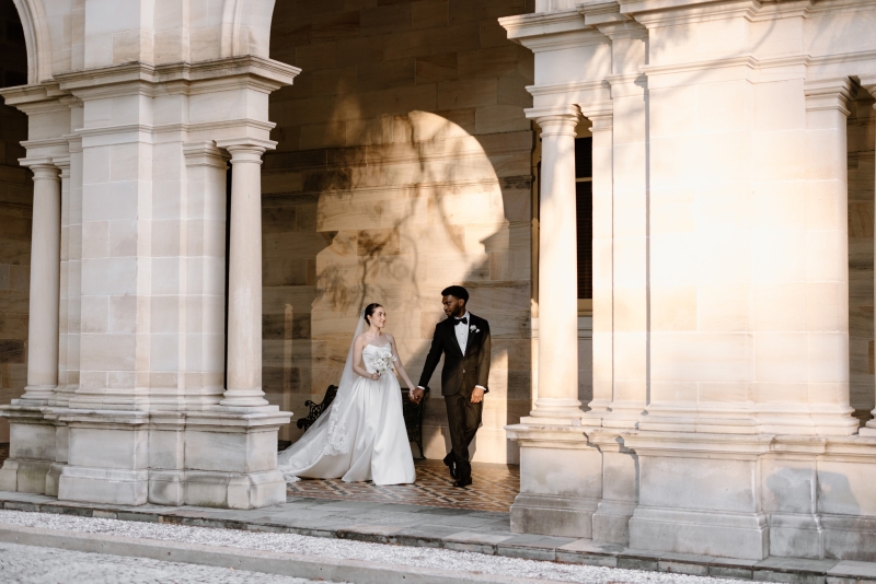 For the post-ceremony celebrations, Wheel and Spoon provided delicious gelato. As guests enjoyed their dessert in the sun, Sionnan and Andre took their leave for their portrait session. “For our wedding portraits, we wanted something with a similar atmosphere, with a focus again on beautiful architecture, whilst being classic and timeless – QLD government house was perfect, and we had the entire venue booked for the afternoon.”