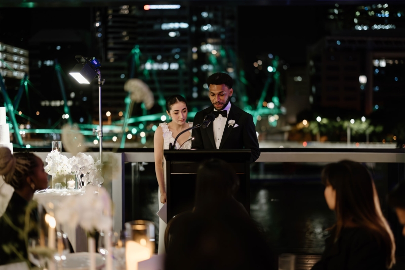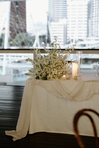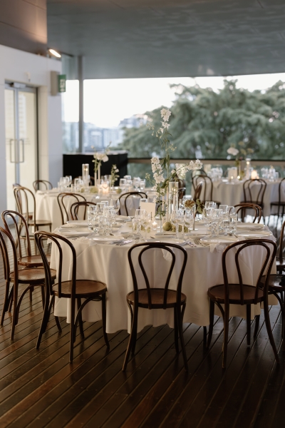The reception was held at the QAGOMA Rooftop Terrace. “Sionnan frequented GOMA throughout high school with her maid of honour, so it has a special feel of nostalgia. It was actually Andre’s mum who suggested we look for a rooftop venue, and when we came across the rooftop terrace, it just felt right. The team from QAGOMA were also absolutely incredible to work with!”
