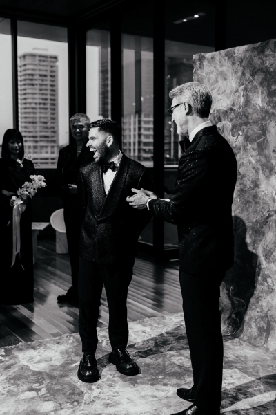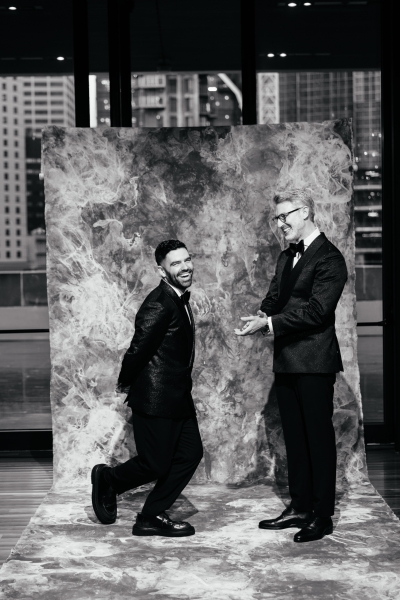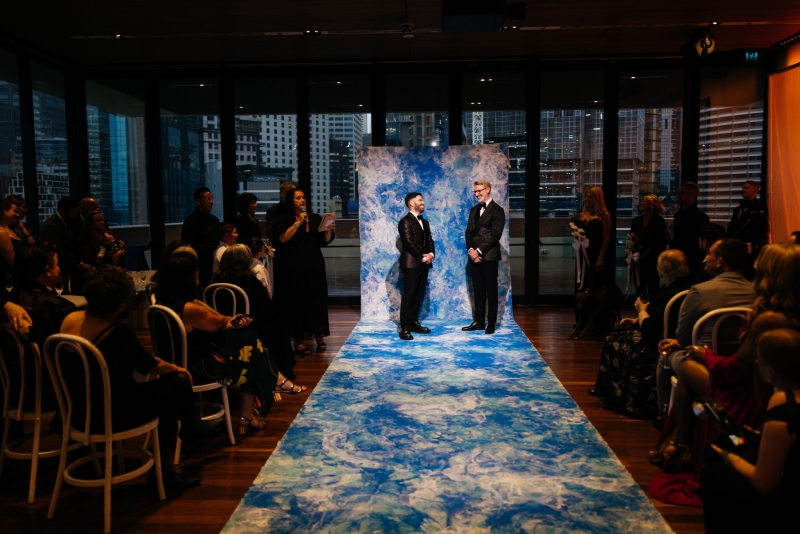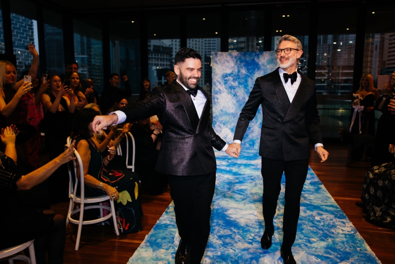 When art meets sparkle, you get a wedding like Will and David’s. Captured beautifully by Caitlin of Mimo Weddings, their celebration at Sydney’s Museum of Contemporary Art was a love letter to creativity, joy, and sparkles. From a double proposal in Hawaii to a disco-glam wedding complete with storms, sequins, and a 10-metre aisle, this was a day that shone as brightly as the grooms themselves.