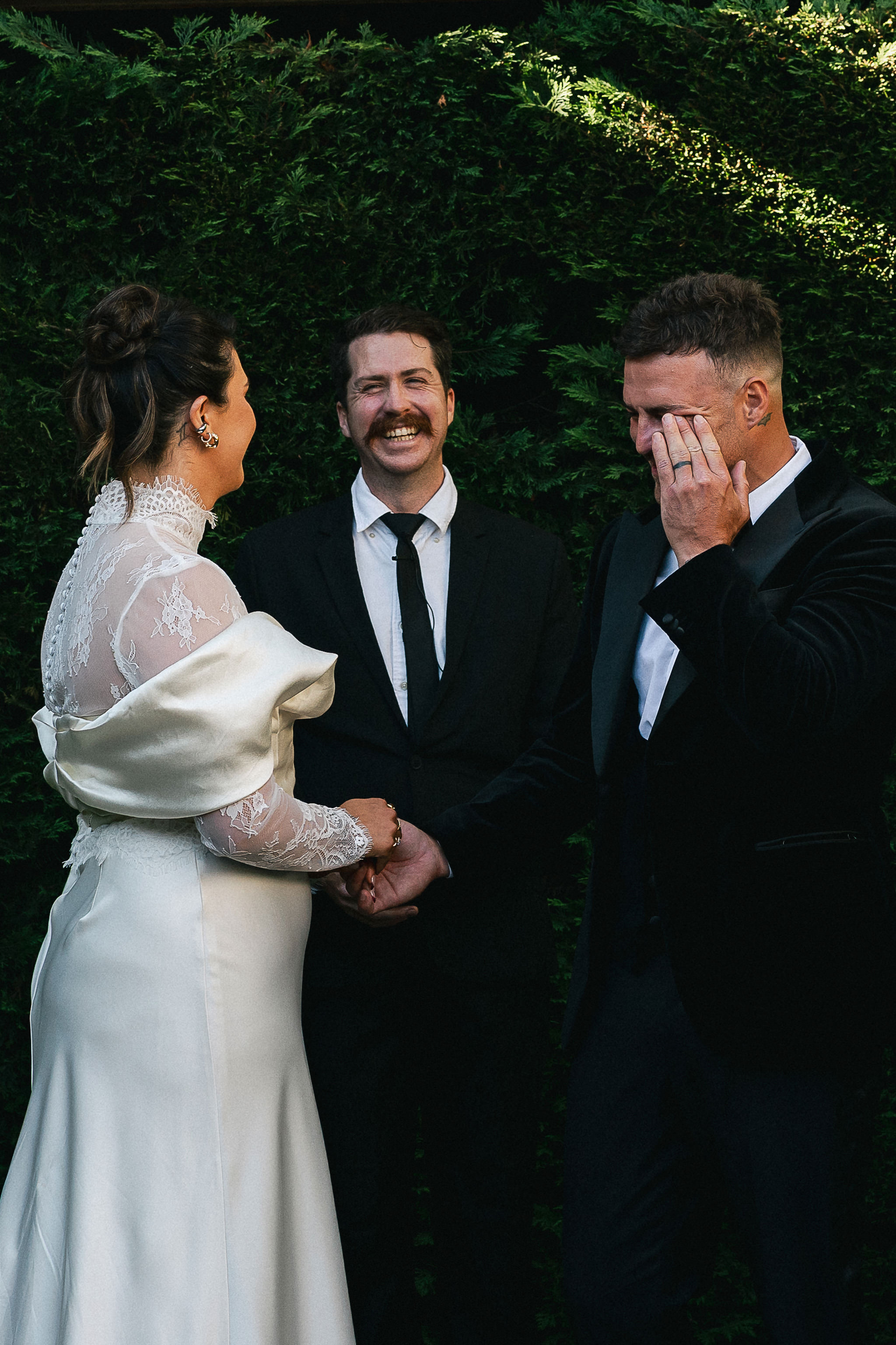 Photographer: @michaelbriggsphotography / Bride's Dress: @raffaeleciucabridal / Ceremony Officiant: @petethecelebrant / Ceremony Styling: @mellyraincreative / Creative Direction & Styling: @mellyraincreative / Styling: @mellyraincreative / Decor: @clothandconfettihire / Ceremony Venue: @lancemoreevents / DJ: @heyjack_co / Flowers: @voguenature.florist / Food Truck: @The.doughnutters / Groom & Groomsmen Attire: @menssuitwarehouse / Guestbook: @offthehook.au / Hairstylist: @ellsartistry_ / Invitations & Stationery: @rebel.reflect / Makeup Artist: @madeleinegoldsmith / Videographer: @directorsedge / Styling Photographer: @kelseyrenaephotography⁠