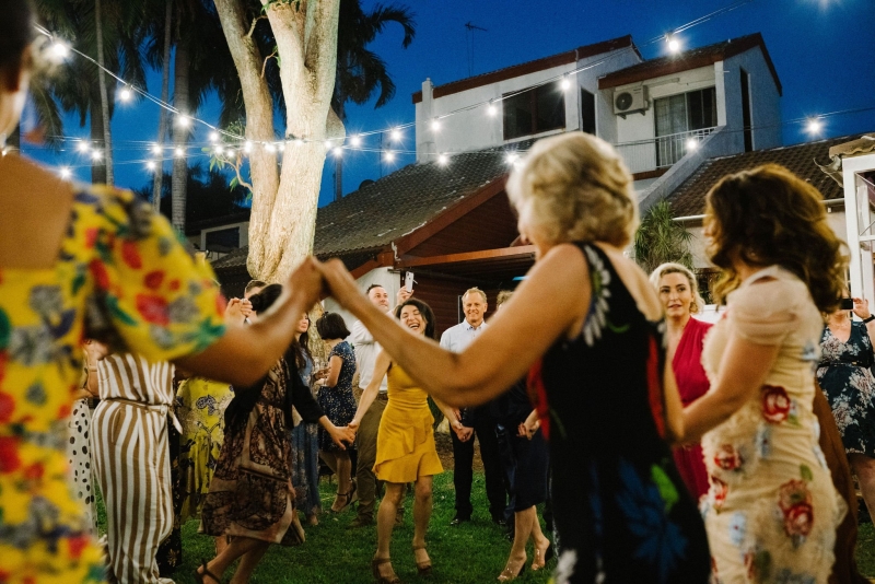 Dancing the hora at a Darwin backyard wedding. Image by Nichole Taylor