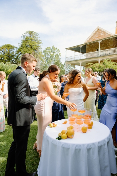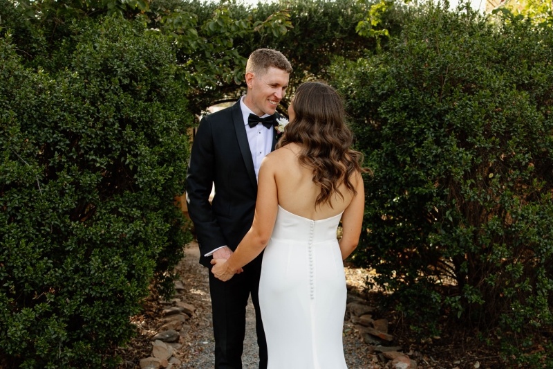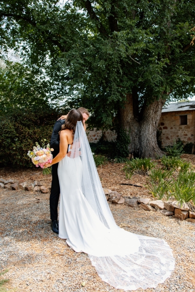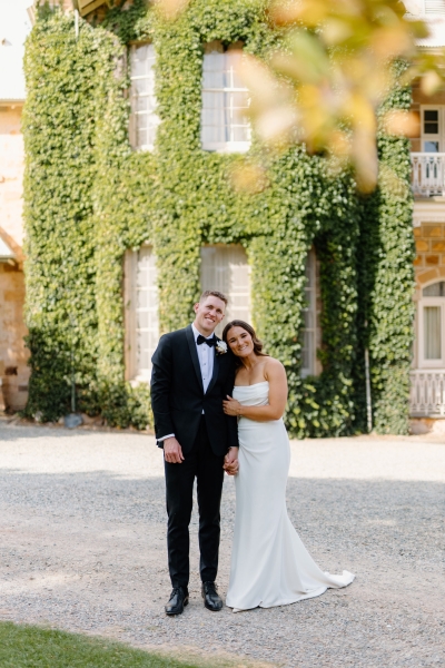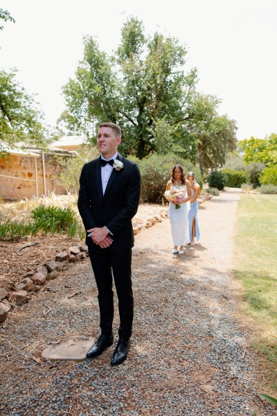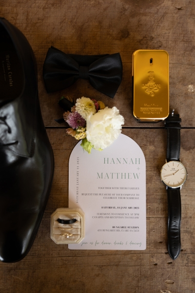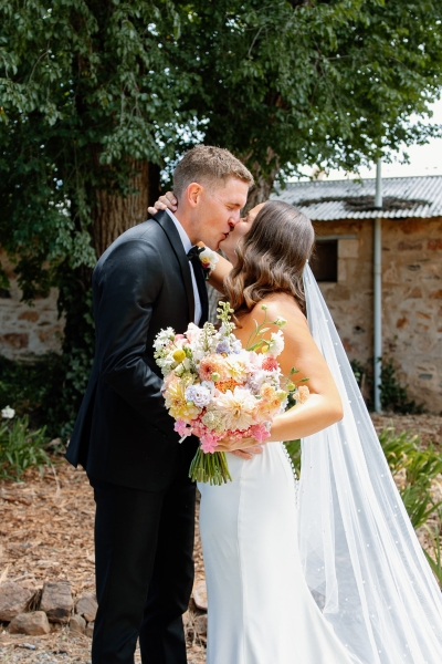 Bungaree Station in sunny South Australia provided the perfect backdrop for this summer garden wedding, featuring an incredible garden, farmstead, and active farm. “Matt is from country South Australia, so the location is close to family for him. It also has plenty of accommodation on-site, so we loved that everyone could stay the night and really immerse themselves in the day. We moved from the lawns in front of the house for the ceremony, to the other side for canapés, and had an open-air reception out the back on a full dance floor.”