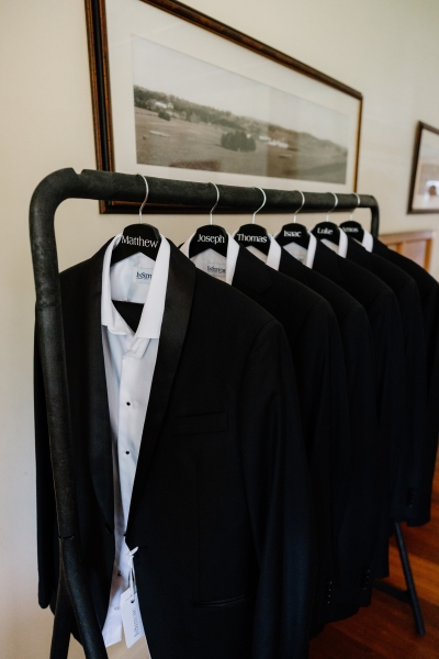 Hannah and Matt took a lot of the finer details into their own hands, even going so far as to buy a Cricut to help! “We printed all our own invites, menus, signage, and little details like clothes hangers for the dresses and suits,” Hannah shared.