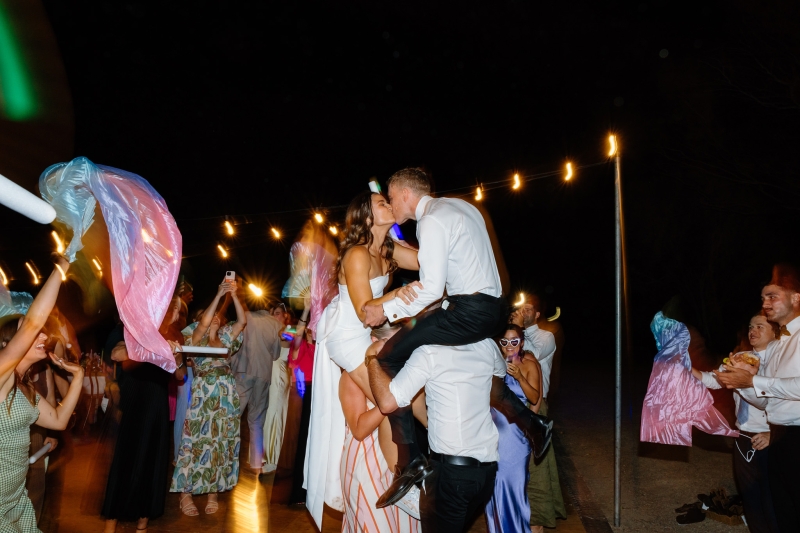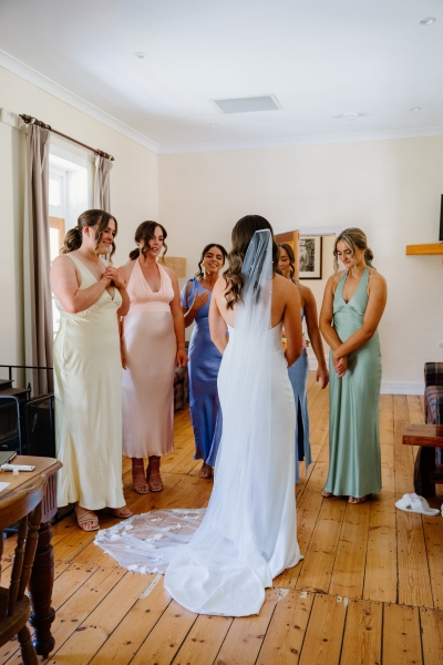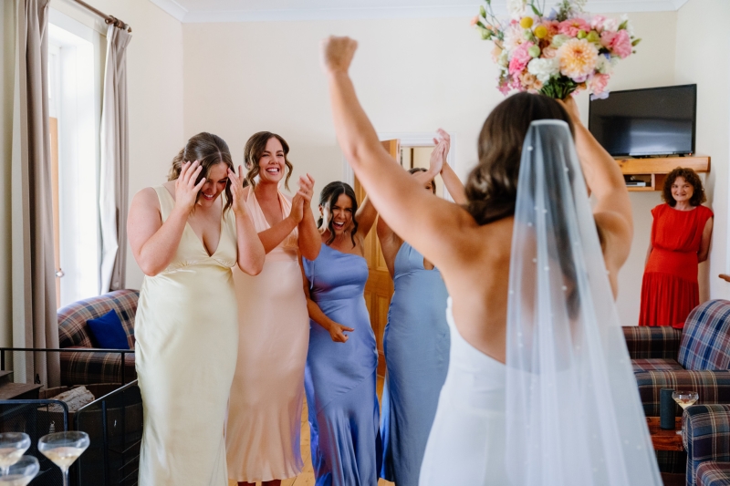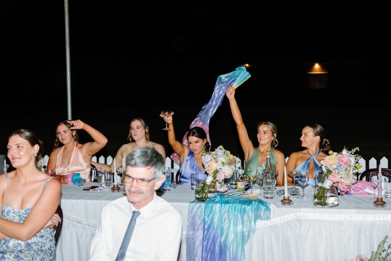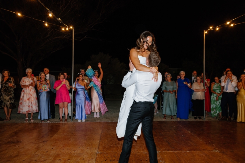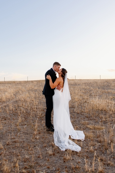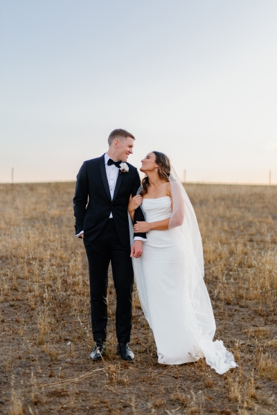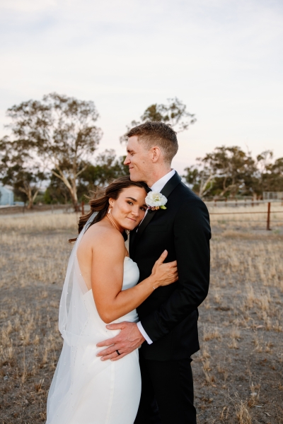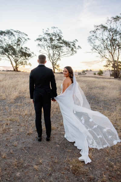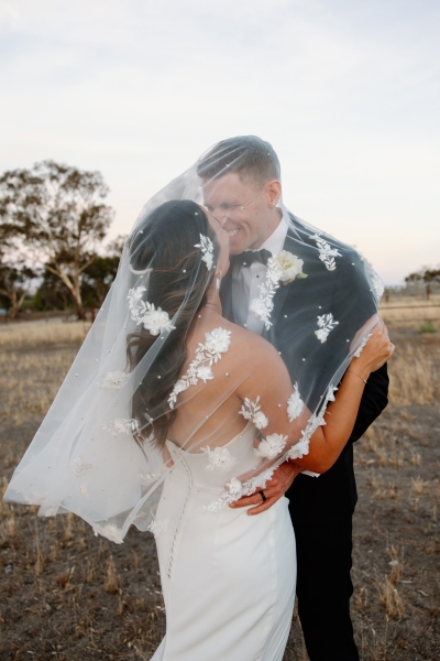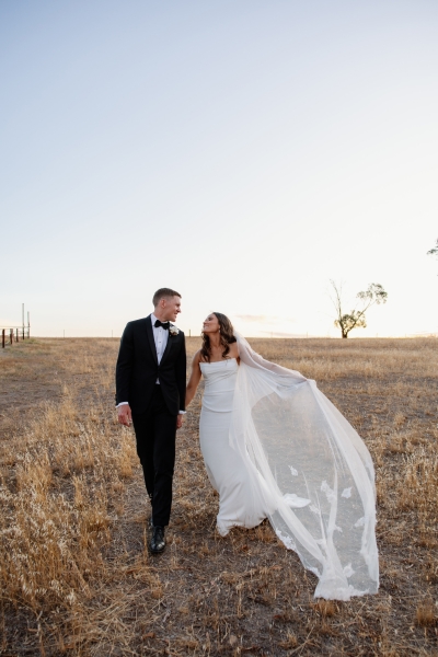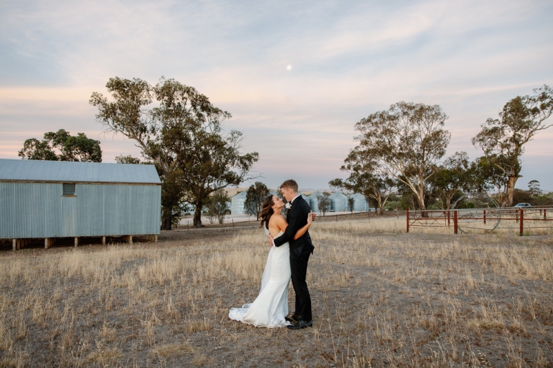 Of all the beautiful photos captured by Dusk Till Dawn, the sunset shots have to be Hannah’s favourites. “Our sunset photos in a paddock are our favourites, in particular one where we are looking at each other with my dress flowing in the wind – this instantly became our phone screen picture. The other is, of course, our first kiss, the reaction of the bridal party, and the gorgeous house in the background.”