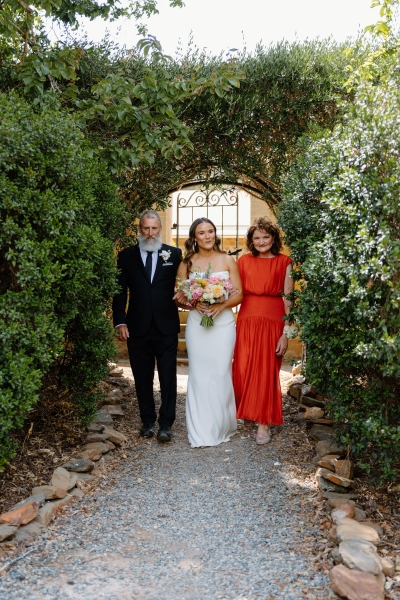As “Yellow” by Coldplay was performed live by Junelee, Hannah walked most of the way down the aisle with her mum and dad on either arm, before taking her final steps by herself. “It was symbolic for me that my parents were with me in the beginning, and my mum was part of that, my journey of becoming independent and walking myself, to joining Matt for the rest of the journey of life at the end of the aisle.”