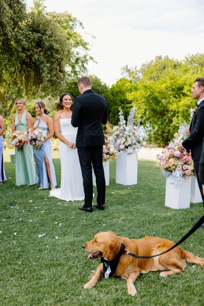 “1. Our Golden Retriever, Murphy, is being involved in the ceremony. He wore his own tux and ran down the aisle to both of us.