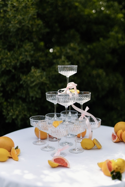 5. A ‘Aperol Spritz’ tower instead of a champagne tower, as that was our drink of choice on our European holiday + it was colourful and fun.