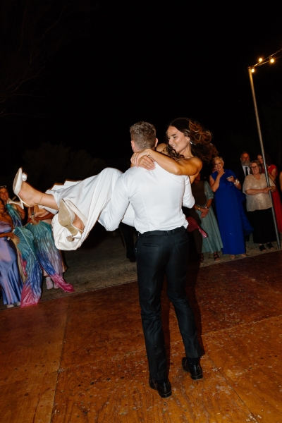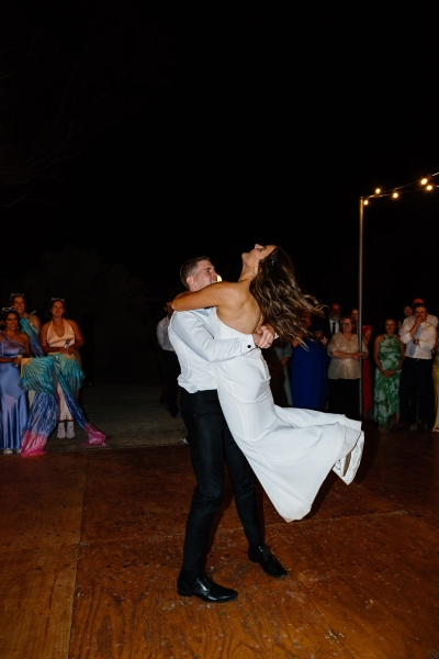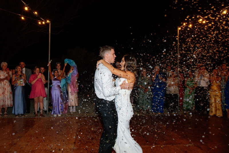 “Matt has two left feet, so we took some lessons to have a memorable dance and some quality photos. The dance finished with a lift, and we organised for Hannah’s brother to let off a confetti cannon for a big finish; however, he got a bit excited and let it off mid-dance by mistake. Our dance was one of our favourite moments of the night, we think, so many people surprised me, and I finally ended up getting Matt on the dance floor.”