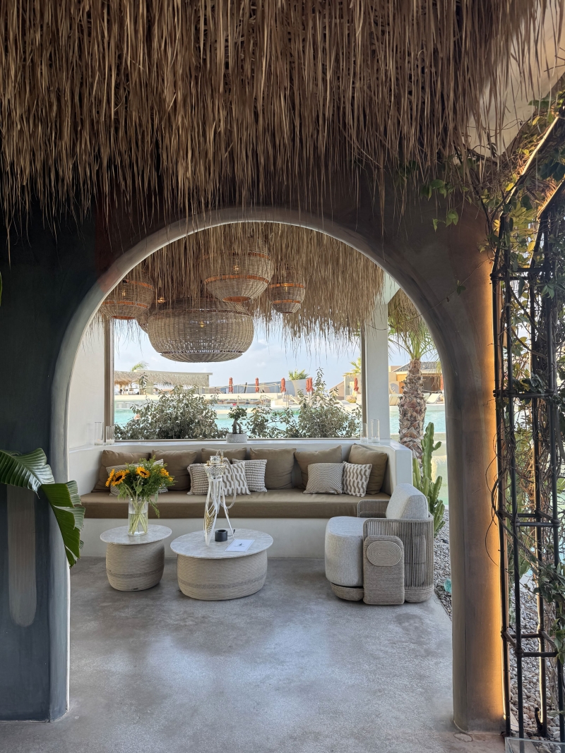 Pacman and Beefbar both have cocktail menus worth perusing. It would be rude not to have sundowners with the world’s most famous sunset as your backdrop. The mixologists at Pacman’s bar, which sits cut into the side of the infinity pool, take their jobs seriously. We try mango lemonade served with drops of mango jelly and a Ginstagram that’s a barbie pink and goes down a treat. Each restaurant also has an extensive wine menu. The sommelier sends us straight to the Greek varietals, which are making a name for themselves. We have no regrets with a lightly chilled red from Kefalonia to go with our steak at Beefbar.