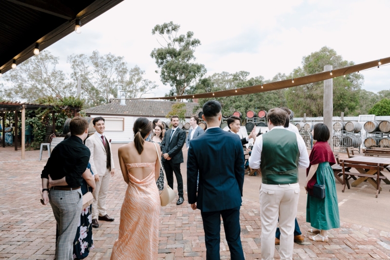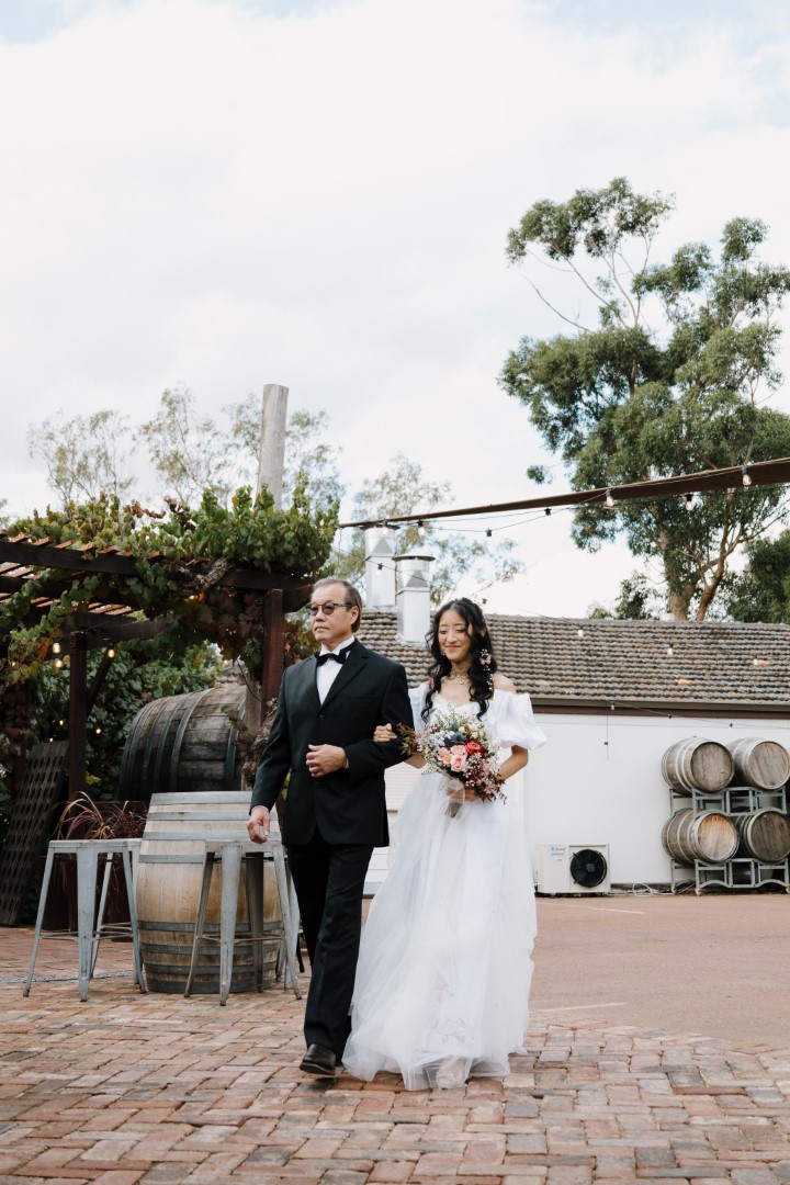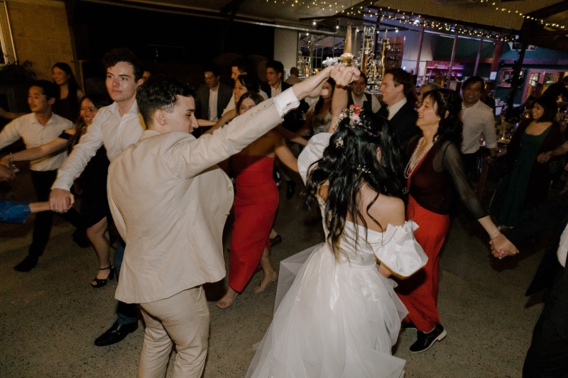 When we got back to the venue, we took photos with family in the vineyards, and once everyone was seated for dinner, we made our big entrance as newlyweds. We assigned the job of MC to our groomsmen and bridesmaids, and they did a lovely job. The whole day felt so much more personal this way. After dinner and cake-cutting, we went around and greeted each of our guests before our first dance turned into our parents’ dance, followed by a traditional Italian Tarantella dance to get everyone moving and on the dance floor. Tarantella is traditionally performed at weddings as a way for the guests to wish the couple good luck. It’s also just ridiculously fun! Finally, I got changed into my party dress and we danced the night away.