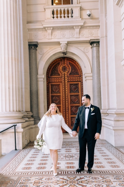 When you show up for Melbourne, Melbourne shows up for you. This became clear to Larissa and Houman as they floated through the CBD in their newly married bliss and found themselves being congratulated from every angle. With their two best friends and Scout from It’s Beautiful Here by their sides, this charming elopement perfectly encapsulates everything Larissa and Houman love.