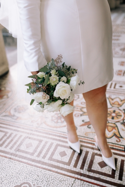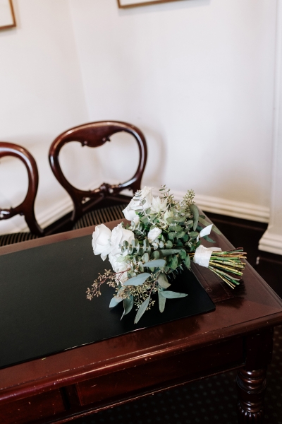 Their flowers were a gift from James and Andrew, sourced from the Larkspur Flowers in Daylesford. “The only direction I gave was white & green, and they must include white roses and eucalyptus. I was so thrilled with how they turned out and it was nice to not have to worry about arranging them myself!”