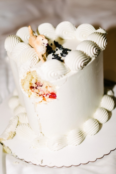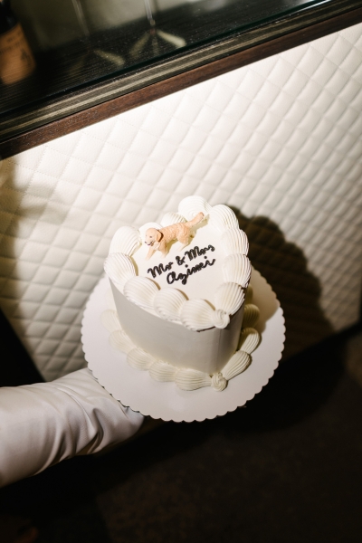 To finish out their day, Larissa and Houman headed back to their hotel to celebrate in style (and comfort)! It was also where they were able to honour their adorable golden retriever, Alfie. “Sounds silly, but it was logistically impossible to have our golden retriever Alfie take part in our day. So I went on Amazon and ordered a little cake topper that looks just like him to have on our cake made by Mali Bakes.”