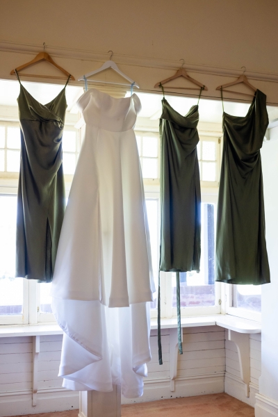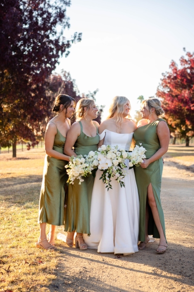 Her wedding party wore these gorgeous Billy J Boutique dresses in a chic olive tone.