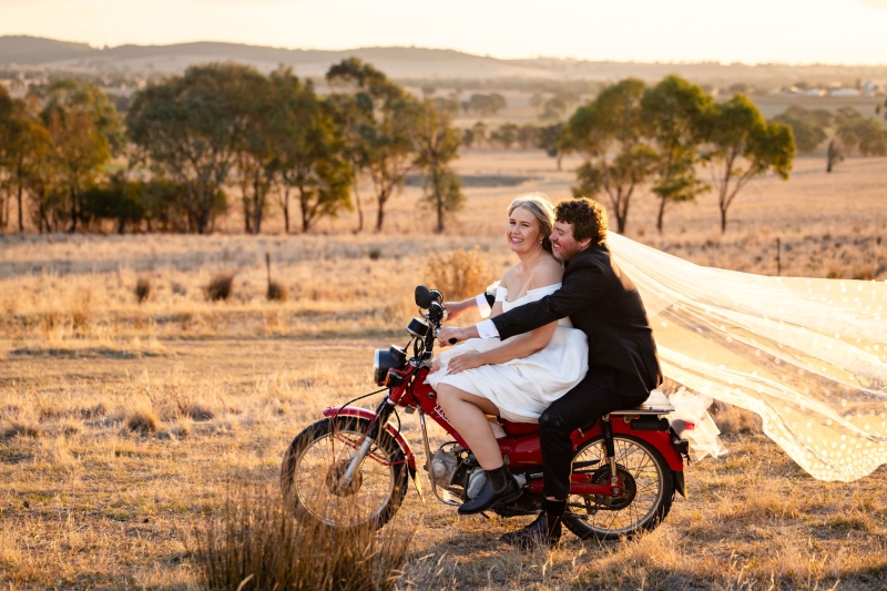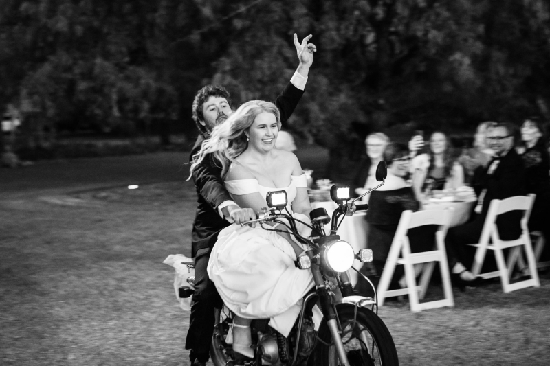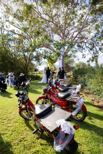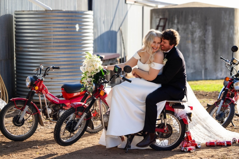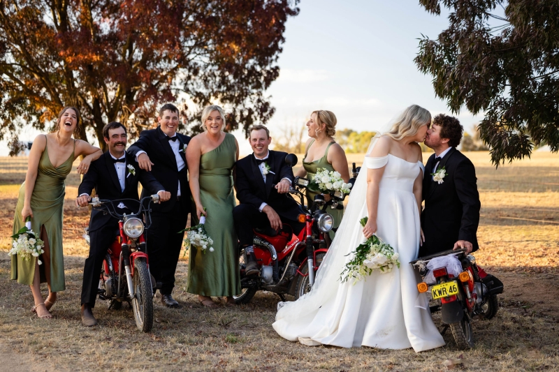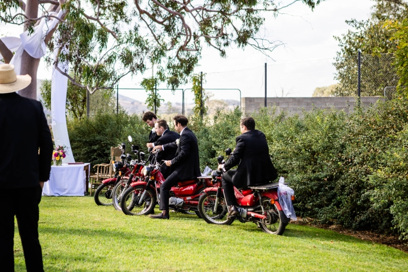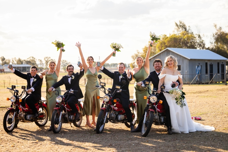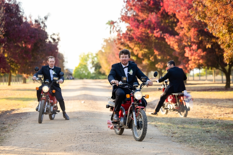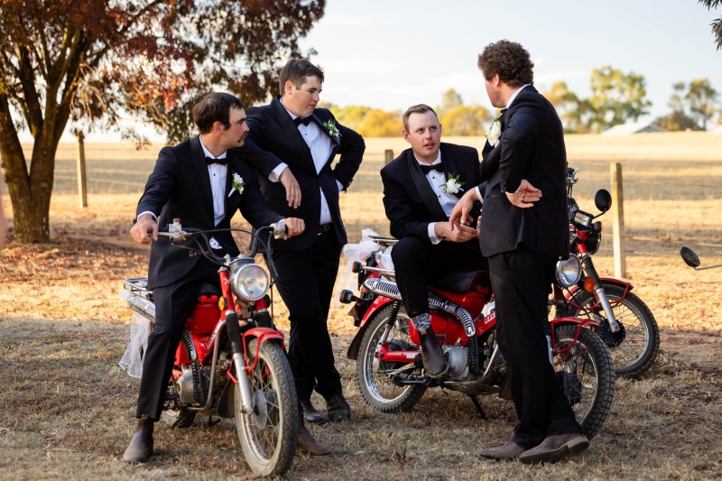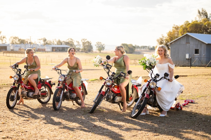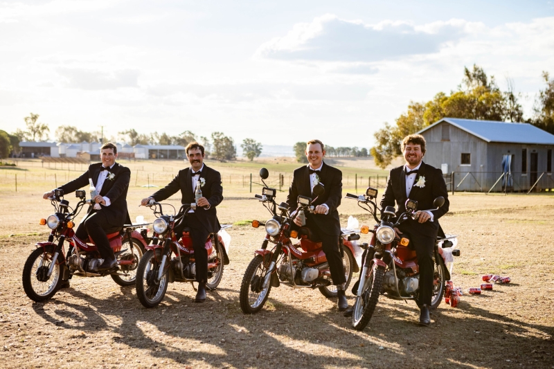 Dom is a huge postie motorbike fan, and that’s clear with how heavily they feature throughout the day! “My husband and his groomsmen rode into the ceremony on them, and we all rode on the bikes into the reception! They were a big hit. Plus lots of photos with our wonderful photographer on the bikes. We had lots of fun.”