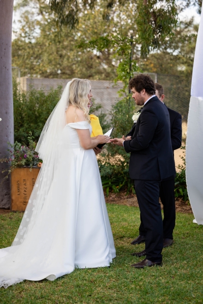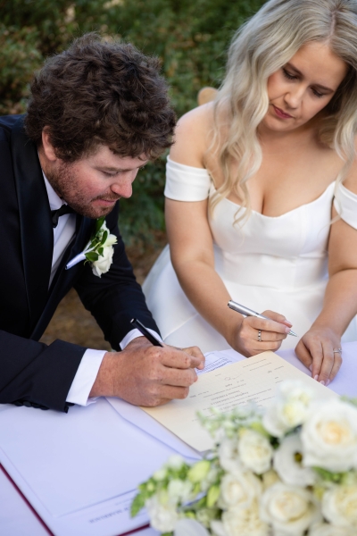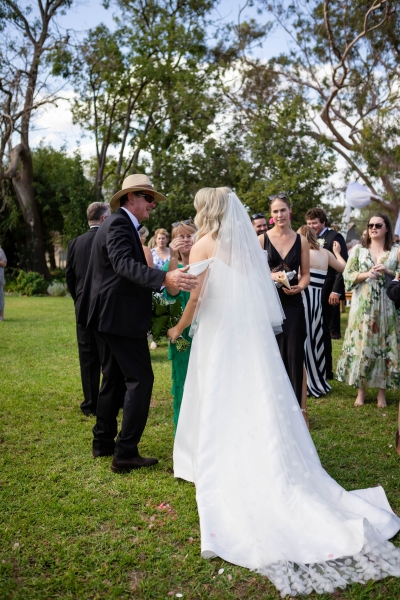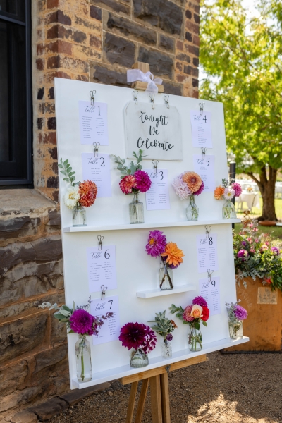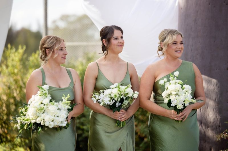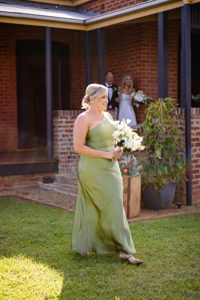 Billy-Lou Floral Boutique in Young created all of the stunning florals found throughout this chic alfresco wedding. Pulling together a mix of Phalaenopsis, Phal orchid and Singapore orchids to bring Angie’s vision to life.