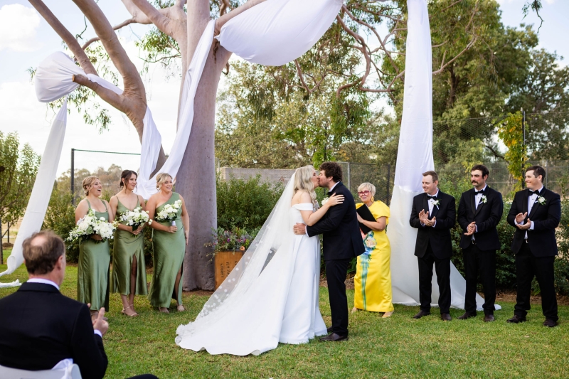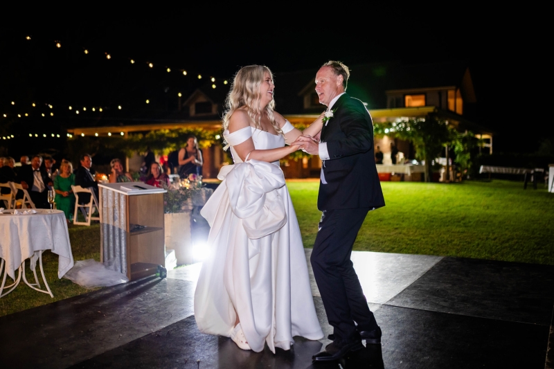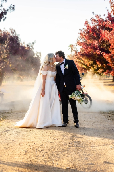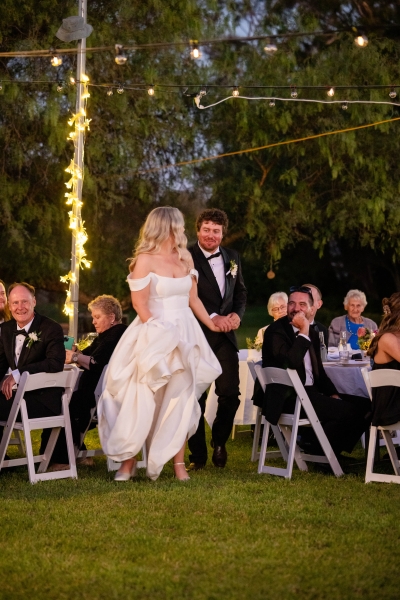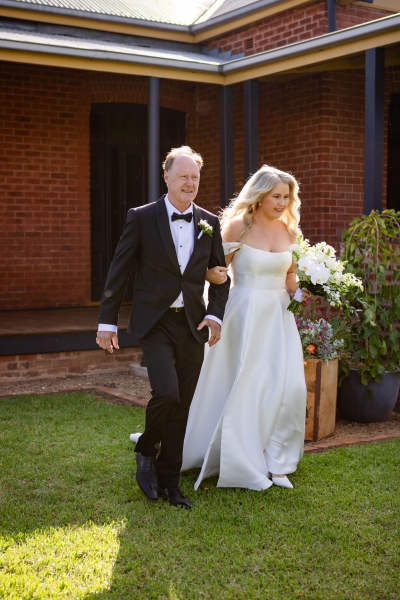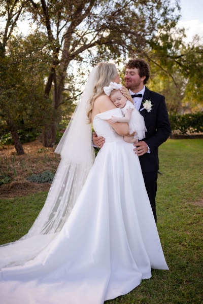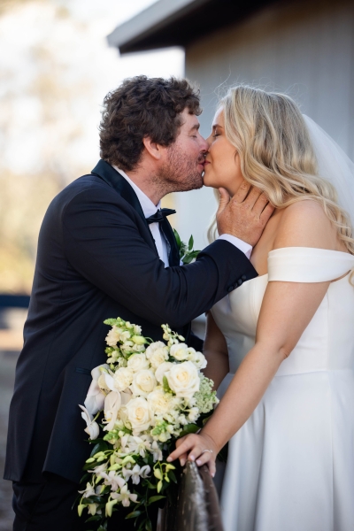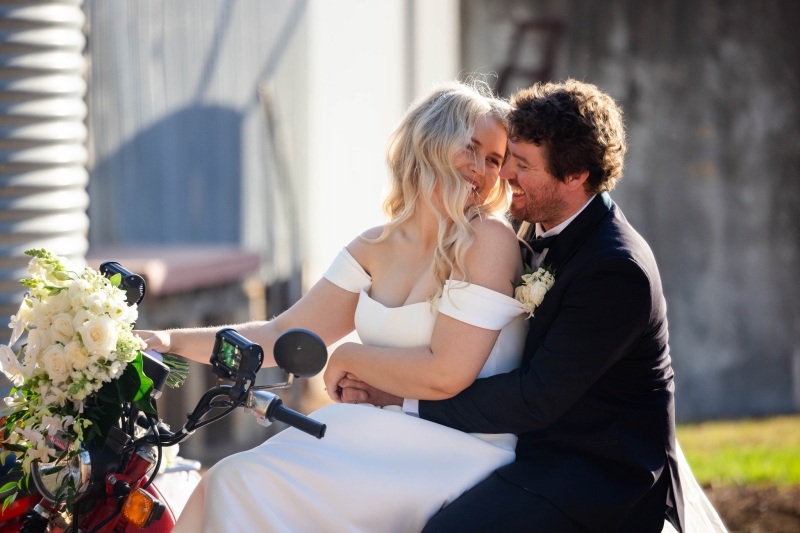 Despite sharing mutual friends for years, it took a swipe right for Dom and Angie’s story to begin – and what a story it became. Fast forward to their chic alfresco wedding: a beautiful garden ceremony on the family farm, heartfelt and hilarious vows, postie bikes, and the sweetest flower girl of all – their baby girl. With every detail lovingly thought out and every moment captured by Anne Cooper Photography, their celebration was a dream come true under the twinkling country sky.