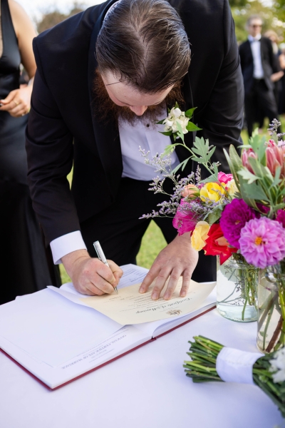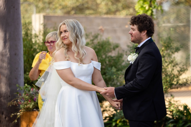 Their ceremony was intimate, warm and lots of fun, thanks to their celebrant Suzie I Do! “Dom kept it light and funny with some jokes in our vows. It was short and sweet, with all eyes on our 5-month-old daughter who fell asleep in my mother’s arms during the ceremony. My cousin Scott made a reading during the ceremony, which was a blessing: ‘These are the hands of your best friend.'”