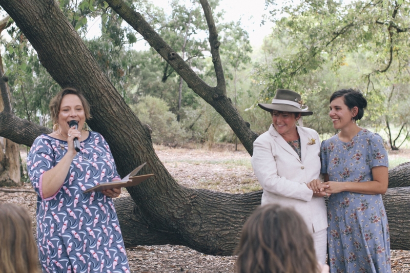 The lovely Emily and Michaela were married last year at a community garden in the inner Northern suburb of Fitzroy with Celebrant Dee Wild. It was actually the garden where Emily worked as a city farmer and where they first met.