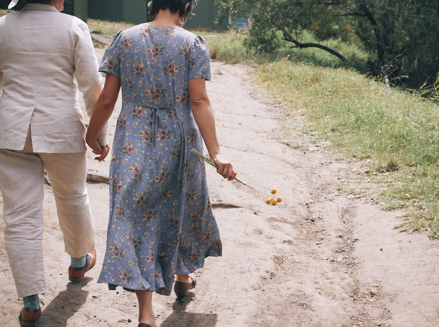 It was only natural that for bouquets, they picked wild flowers and flowers from the garden as they walked to their ceremony.