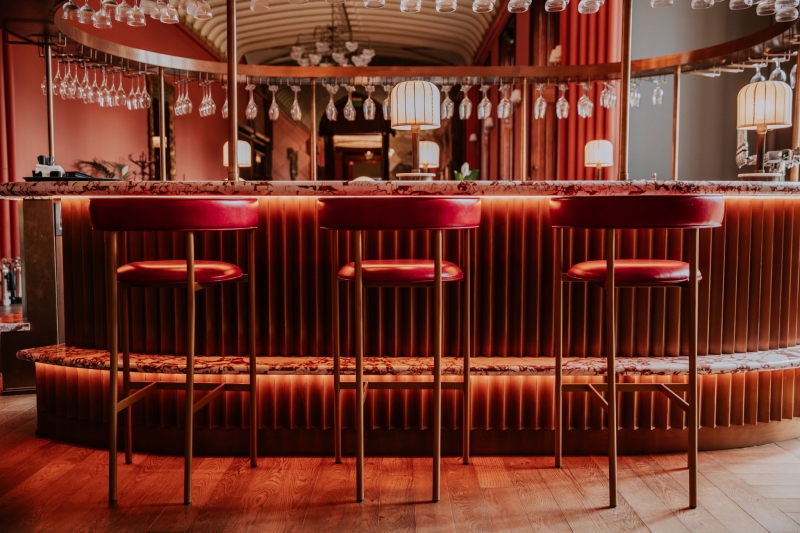 Back downstairs, tucked into a drawing room is the decadent Slàinte bar. The pendant lights look like molten gold in the sunset light, while the bar feels Great Gatsby inspired. We sip dainty cocktails inspired by the 180 year history of Mar Hall and the surrounding Glasgow city – my Gallant 74 balances gin and sparkling rose with a lemon twist or there’s a heartier Highland Mist that pays homage to the Scottish land with a smokey whisky experience. Night caps never looked so good.