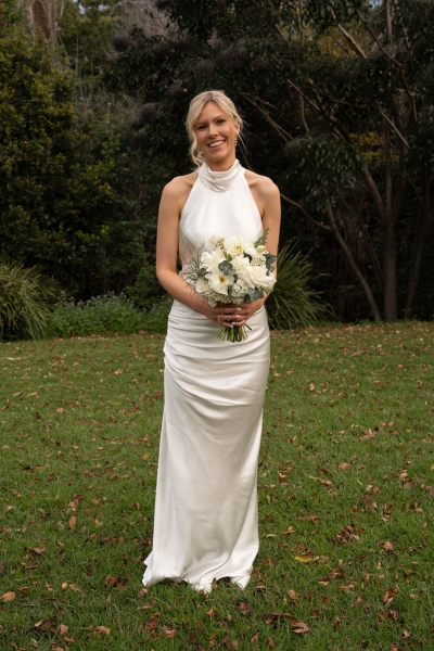 Ola’s incredible halter-neck gown was custom-made by the ever-talented Lilli Marcs! “Lilli was incredibly accommodating throughout the whole process and paid attention to every detail. She even helped me choose my shoes and accessories. Her shop in Paddington is wonderful, and we still visit her every time we are in Sydney,” she explained.