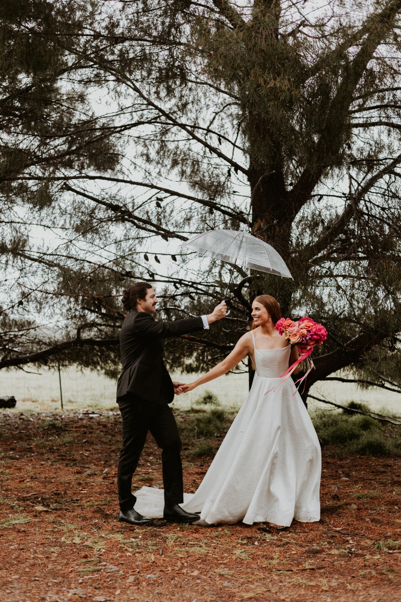 You can spend months planning for blue skies and sunshine, but sometimes the weather just has other ideas. Here’s the thing: some of our favourite wedding moments have happened under grey clouds, with bouquets held in one hand and an umbrella in the other.
