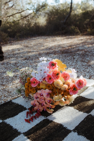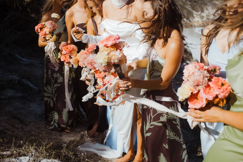 If it wasn’t already clear, the theme for Caroline and Rohan’s wedding was coastal, 1960s and fun! “Sentimental / Fun / Vibrant / Colourful / Quirky / Sustainable and most importantly “us”! Our stylist, Brodie (Bib Approach), created the most incredible style guide from our inspiration photos (which were mostly photos from our travels) that guided the whole process – she had the most amazing ideas and brought to life what I can only describe as the best wedding in the world!”