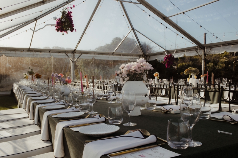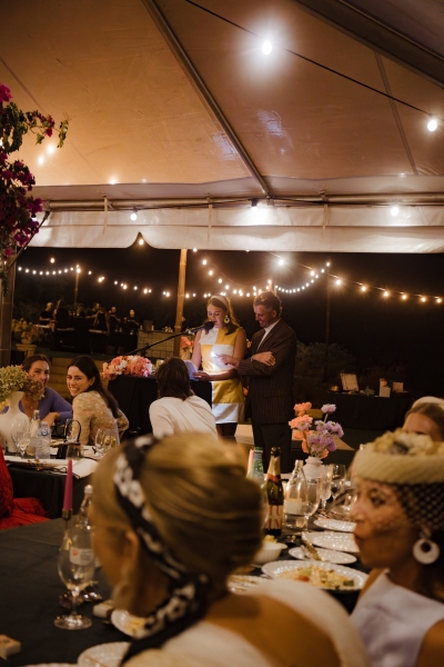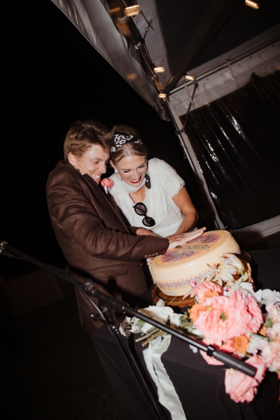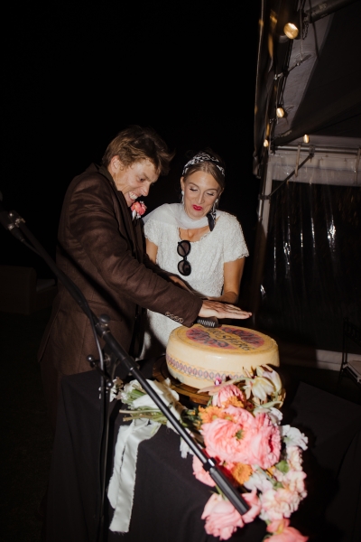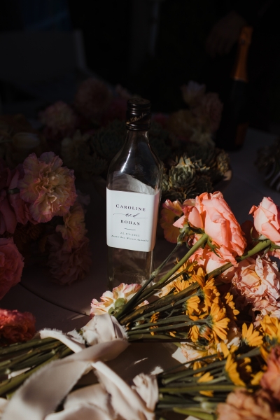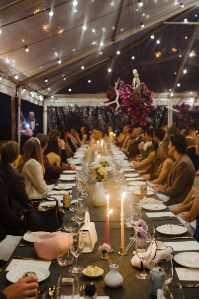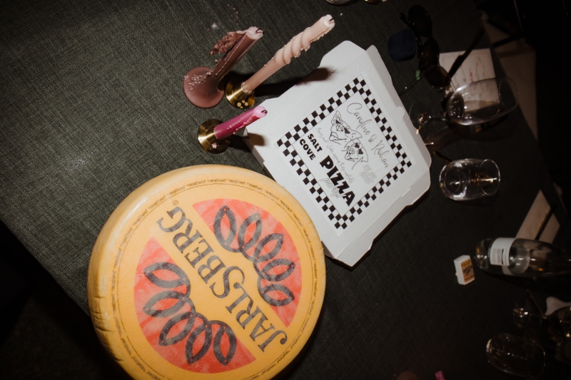 Rohan wanted to shout out their incredible caterer, Vincenzo from Il Paiolo: “He came all the way from Perth to cater, and his incredible Italian food was so delicious. The ragu for mains was insane. And the pizza for an entrée (and for the late-night snack!!! which we served in custom pizza boxes that Caroline created with a sketch of our two dogs that our friend Gen drew for us!)”