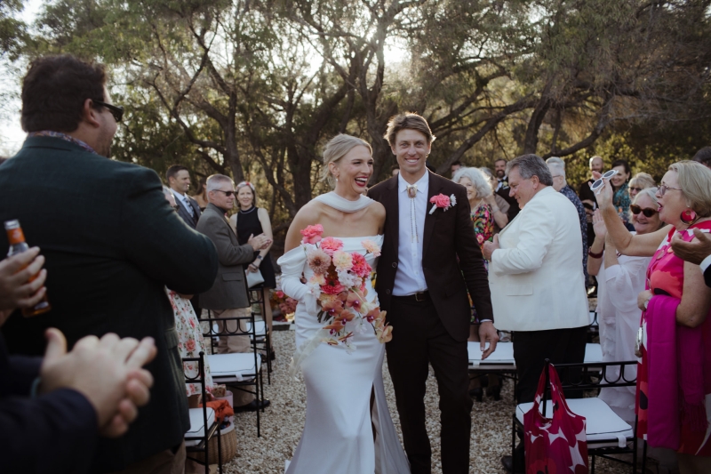 In what felt like a story straight out of a retro love song, Caroline and Rohan’s paths first crossed at a young farmer’s party, an unassuming night that changed everything. Fast forward to a wedding that was every bit as colourful, sustainability-focused, and bursting with 60s vibes. With photography by the incredible Greta Wolzak, their coastal celebration at Salt Cove Bremer Bay unfolded against the sea, salt and sand.