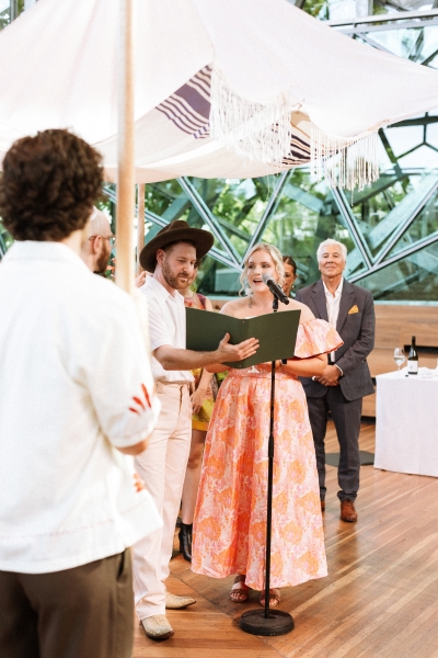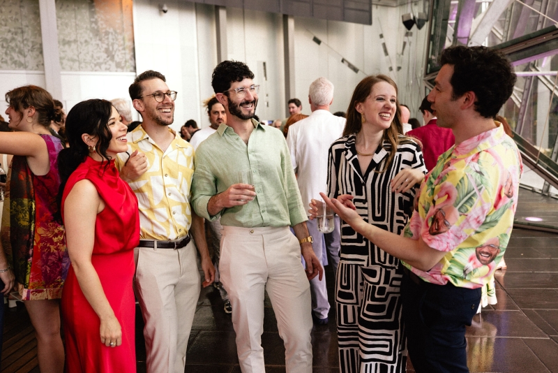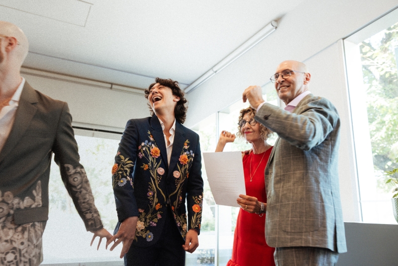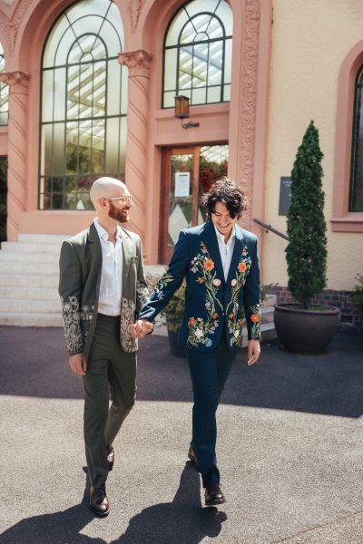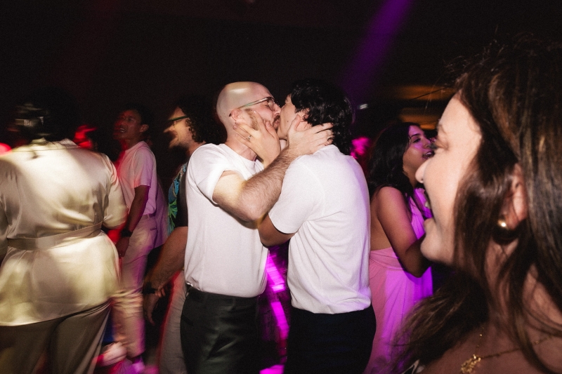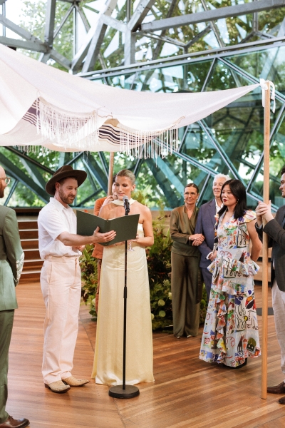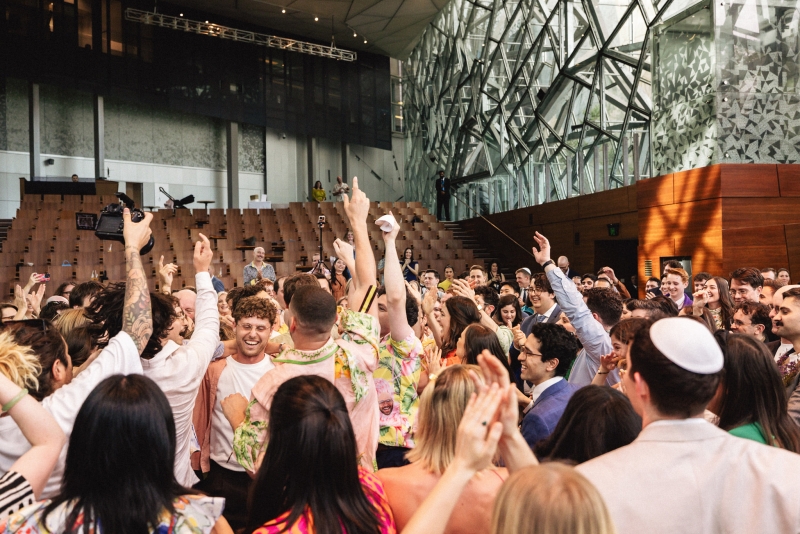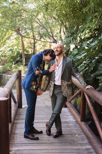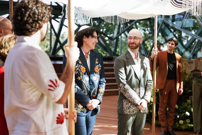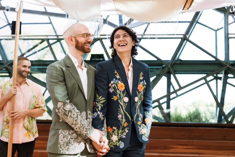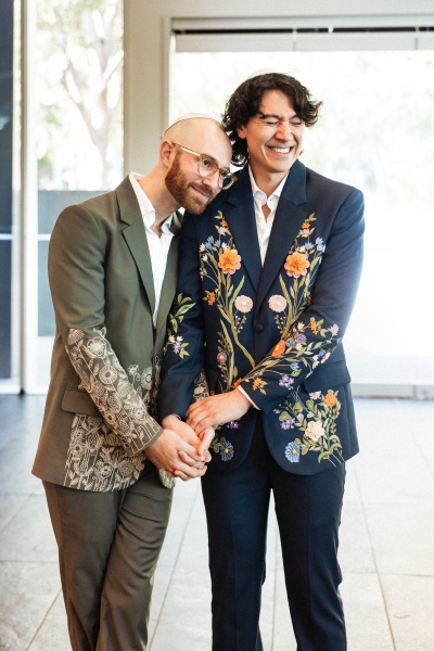 Zesty was the dress code, and zesty was the energy: a riot of colour, queerness, and Jewish joy that pulsed through every moment of Brandon and Dan’s Melbourne celebration. Captured with warmth by We Are All Stardust and These Wild Eyes, this was a wedding where personality ruled the day. Their story has always had a rhythm of its own – intimate, sincere and delightfully unscripted. Their wedding followed suit with floral-embroidered suits, a hand-built chuppah threaded with family history and a hora that lifted everyone, literally, off the ground.