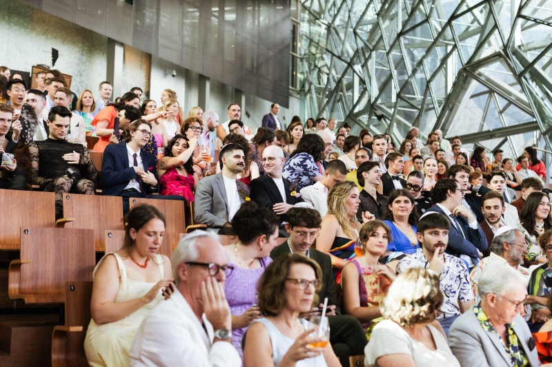 The actual ceremony was held in the timber and glass auditorium at The Edge, followed by a gorgeous reception at Zinc Fed Square.