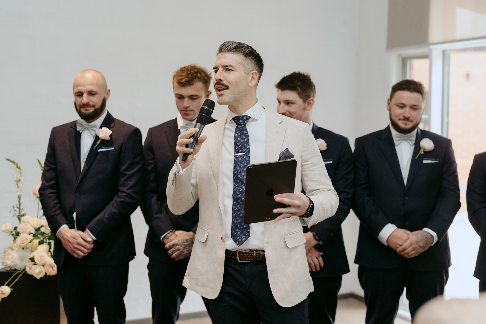 Photographer: @kimmystevensphotography / Bride's Dress: @english_rose_bridal / Ceremony Musicians: @dolceensembles / Bride's Jewellery: @kailisjewellery / Bride's Shoes: @countryroad / Flowers: @sonny_and_willow / Wedding Planner: @veilsandvibes / Styling & Decor: @veilsandvibes / Venue: @lamontsbishopshouse / Ceremony Officiant: @just.ad.sanz / Content Creator: @q.rated___ / Engagement Ring: @novita.diamonds / Groom's Attire: @australianformalwear / Groomsmen Shoes: @florsheimaus / Hair & Makeup Artist: @_makeupbymadeleine / Wedding Ring: #WhitbyJetRing / Hire: @hiresociety / Candles: @cadureecandles⁠