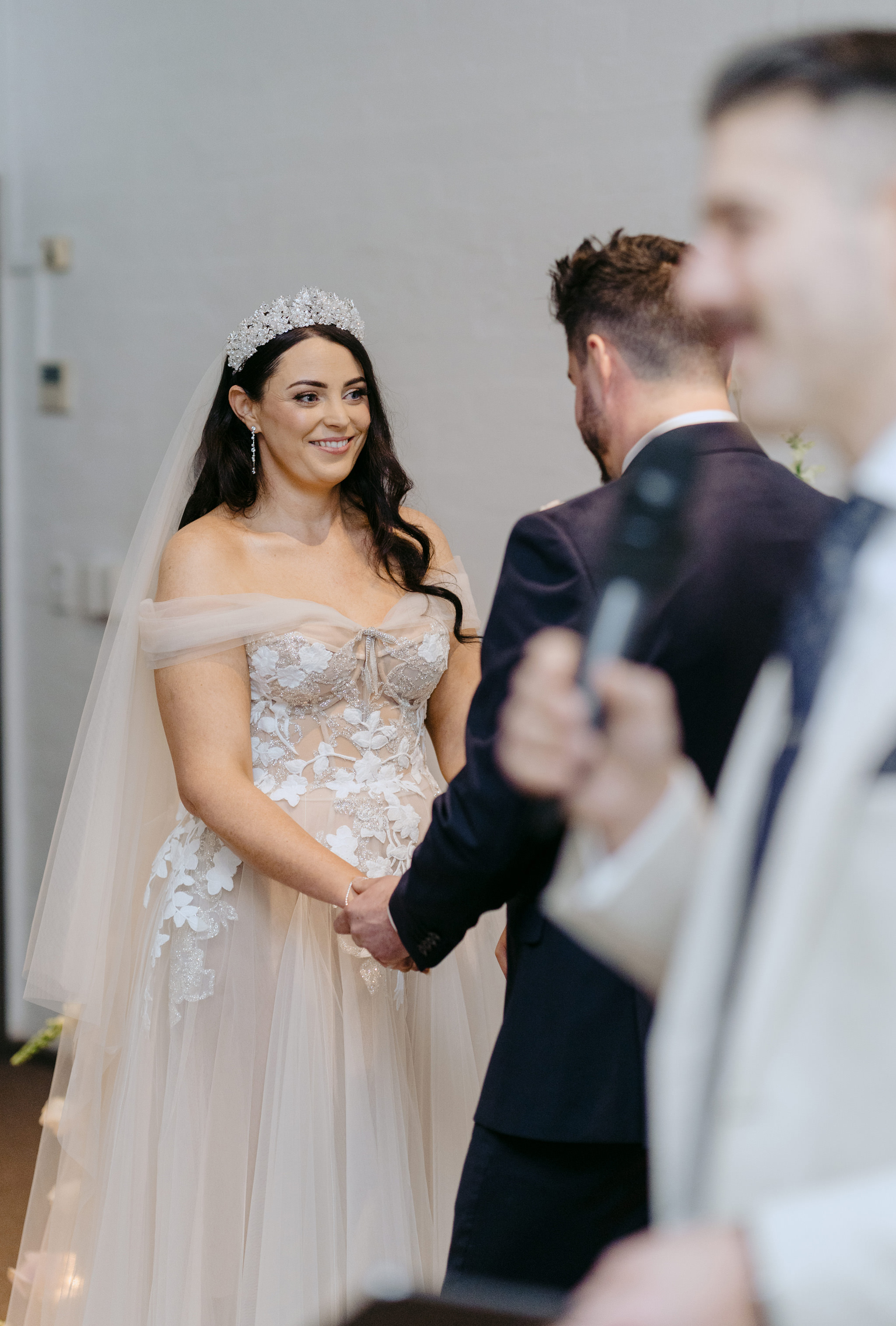 Photographer: @rachelmayau / Bride's Dress: @eternalbridal / Bride's Reception Dress: @janehillbridal / Ceremony Venue: @thegeorgeballroom / Cinematographer: @c2films / Flowers: @haileypaigeflowers / Groom & Groomsmen Attire: @oscarhunttailors / Hair & Makeup Artist: @Makeupbyjane_ / Hairstylist: @jayteehair / Photo Booth: @ozphotobooths / Wedding Cake: @missladybirdcakes / Ceremony Officiant: @mycelebrantbuddy / Musicians: @tobitobi.co / Dessert Table: @gelatomessina / Catering: @dammfinefoodgroup⁠