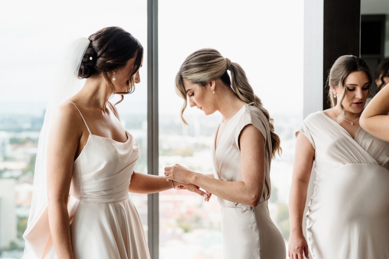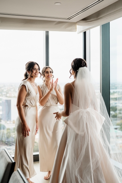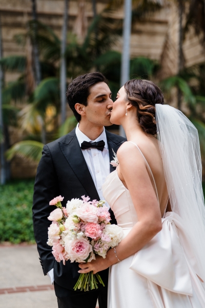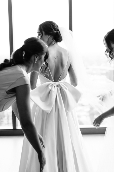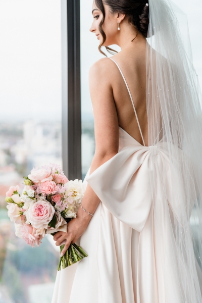 In a true show of fate, the very first dress Sophie tried on at Bridal by Aubrey Rose happened to be the one! “It was a beautiful gown by a local designer, Rachel Rose, that featured a low back with a large bow, and a lustrous, soft blush finish all over. Not that I had much choice, though, my mum and sisters gave me no other option, to the point that my sisters offered to pay for the dress themselves, just so I would get it. I wouldn’t have it any other way, though. I felt like a princess the entire day,” she shared.