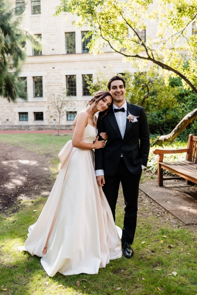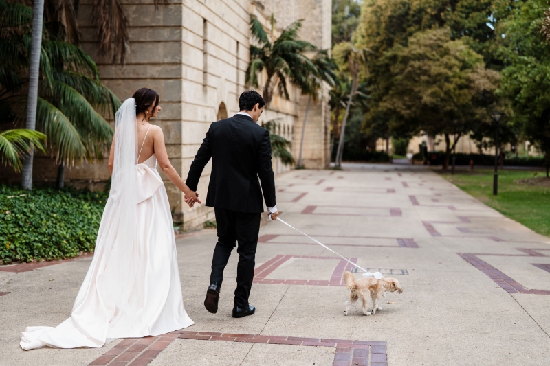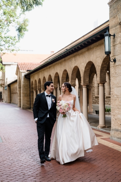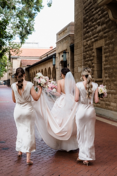 With so many beautiful photos, it wasn’t easy for Sophie to pick one as her favourite – but two definitely stood out. “It’s SO hard to pick. There’s a shot of Rob and me holding hands, walking away from the camera, with the beautiful backdrop of UWA in front of us. This photo is stunning. I also really love one of Rob and me standing next to each other with my arm around his and my head resting on his shoulder (the one above!) There is something so beautiful about the colours/light in this photo, it just feels so dreamy.”