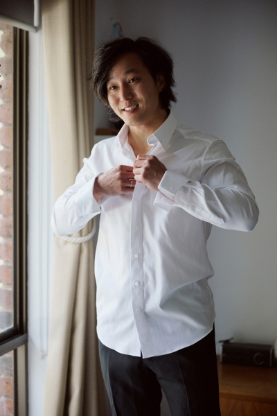 Chan worked with Beg Your Pardon to tailor this beautiful custom-made suit. They came highly recommended by Cristina from Couture Love Madness (who designed Kate’s gown!). “Chan and I had been to a few places to look at suits, none of which fit him properly or really had any kind of pizazz. After we had been in to chat to Michael, Chan decided to go ahead straight away – Michael was so knowledgeable about fits and styles, what would work for Chan’s body shape and the fabrics he might like,” Kate explained.