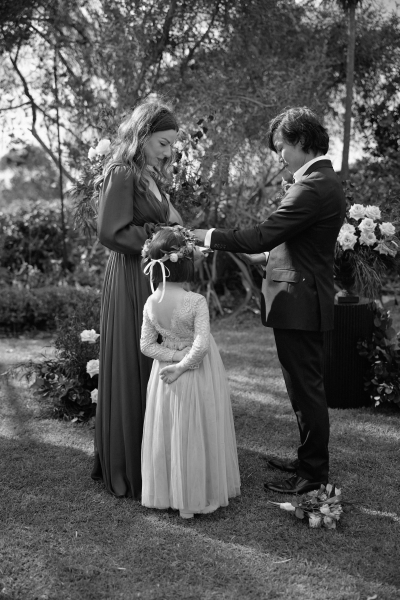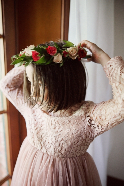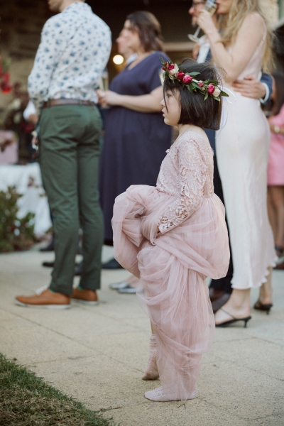 Their beautiful daughter was the flower girl, wearing the most adorable dusky pink dress with a tulle skirt from Arabella and Rose. Her look was finished with a flower crown and a necklace Kate had made for her when she was pregnant.